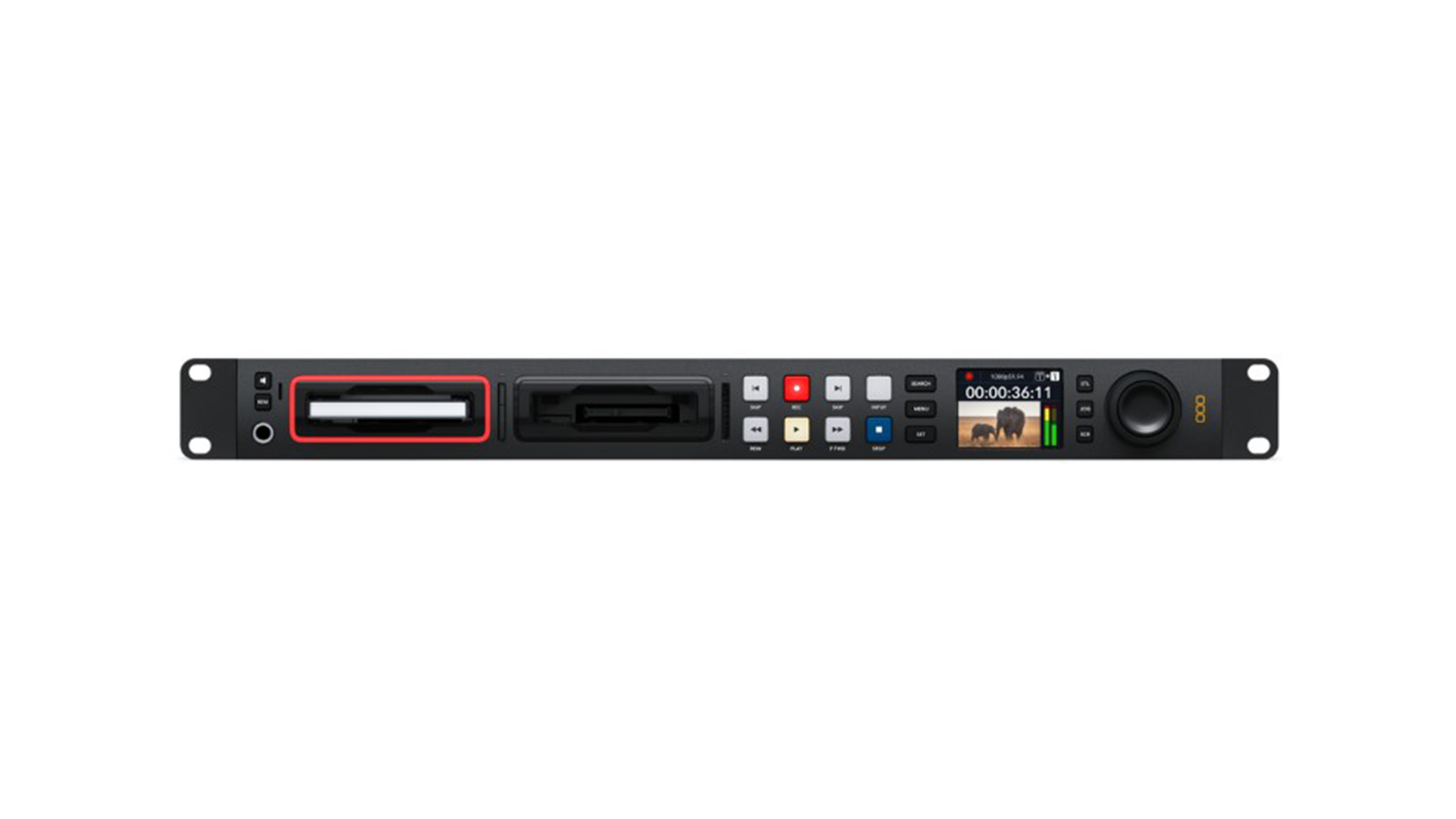 Registratore HyperDeck Studio HD Pro in formato rack 1RU full-width.