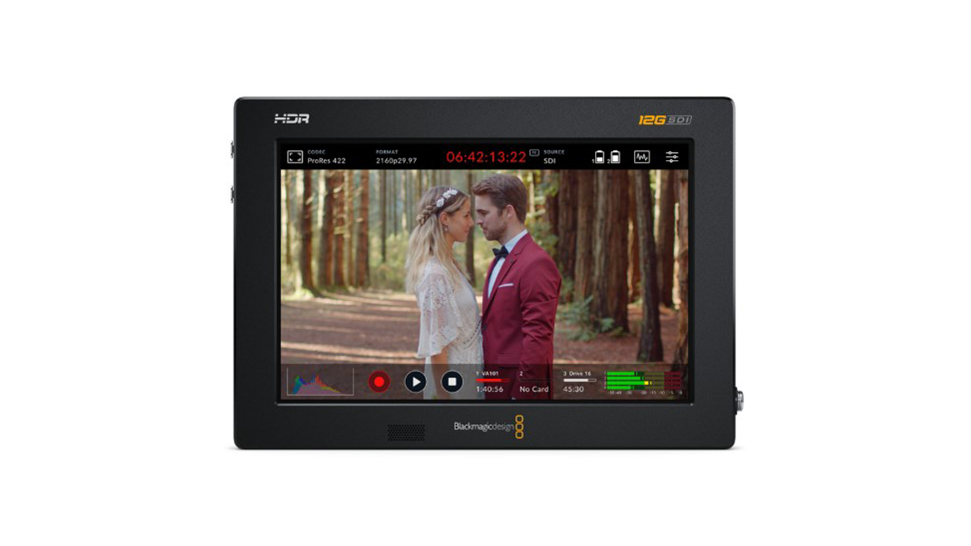 Monitor/registratore professionale 7″ HDR per formati HD, Ultra HD, 2K e 4K DCI, compatibile con ingressi SDI e HDMI.