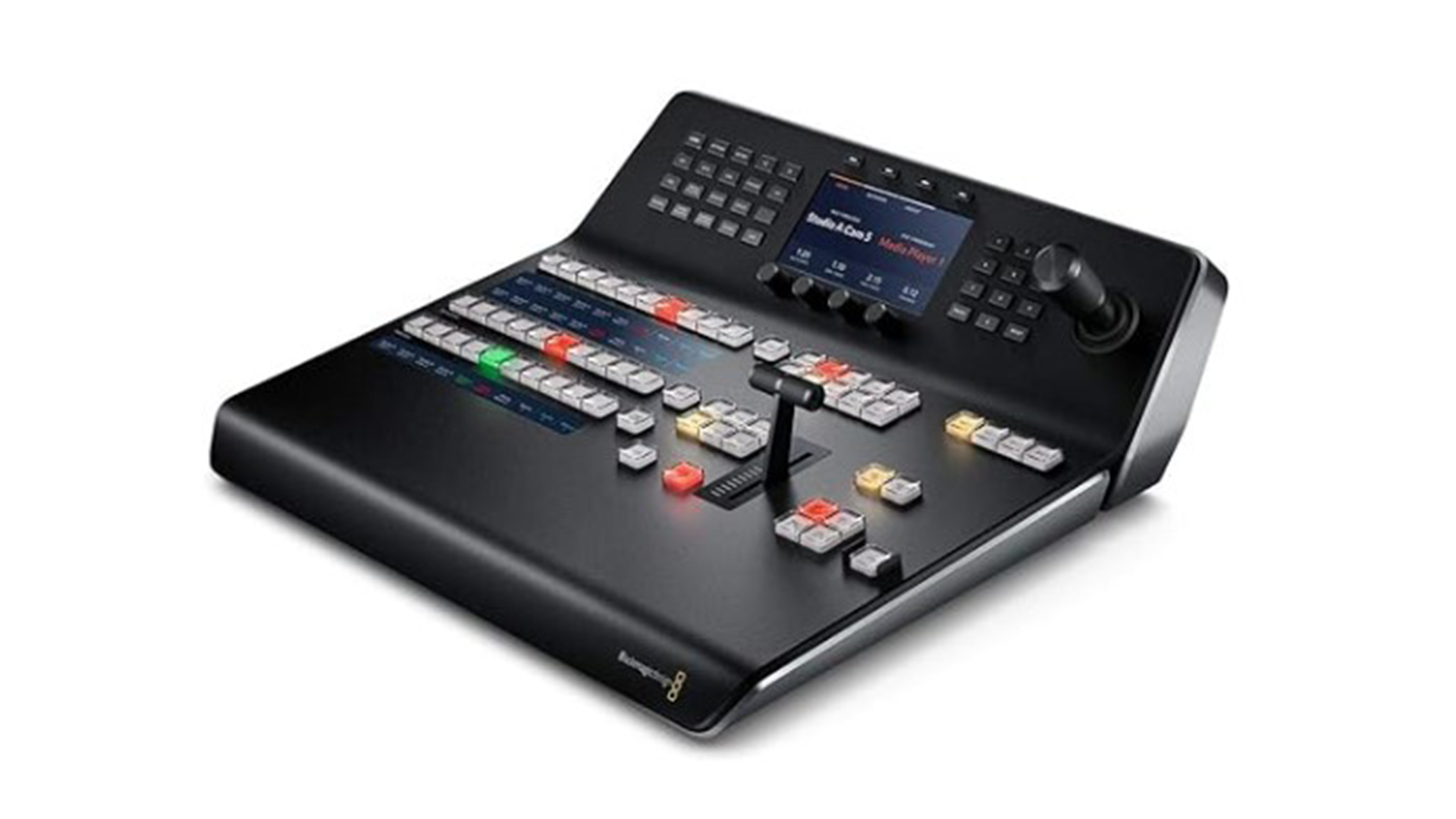 Dotato di display LCD, joystick per controllo DVE e telecamera e leva di transizione.